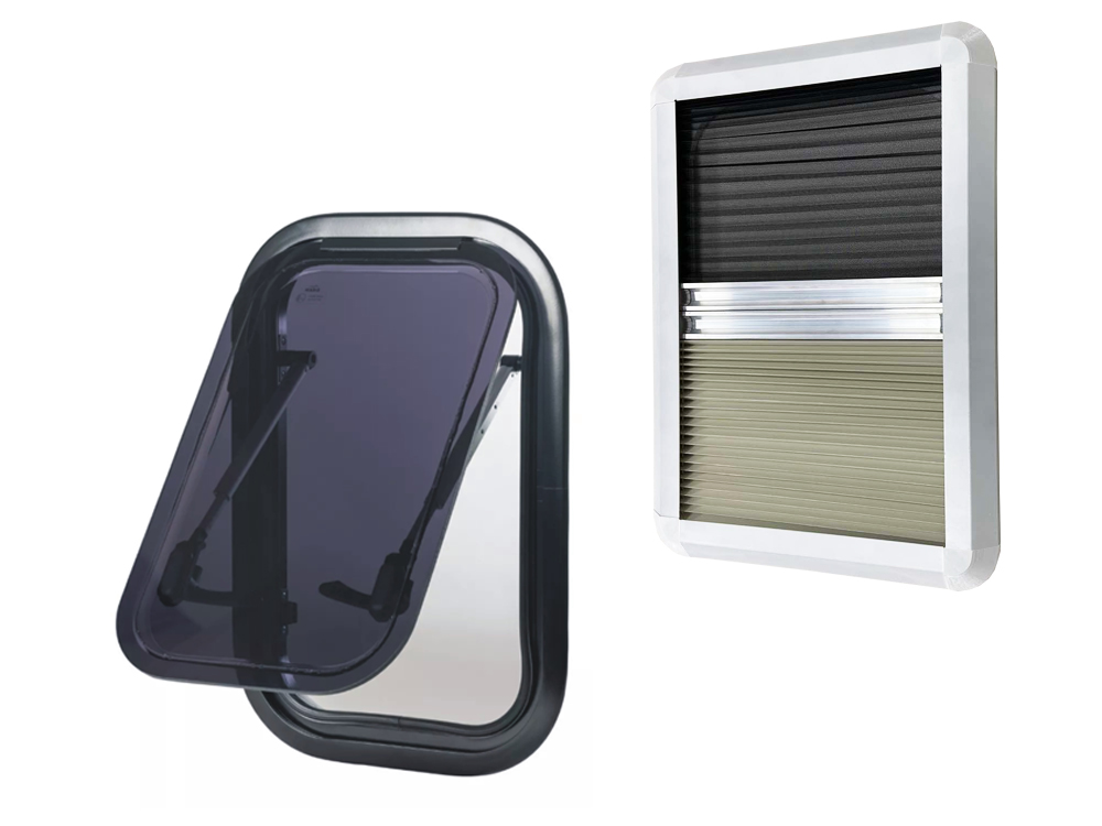FINESTRA AM MASIS A COMPASSO 300×450 mm NERO SCURO / KIT CON OSCURANTE E ZANZARIERA