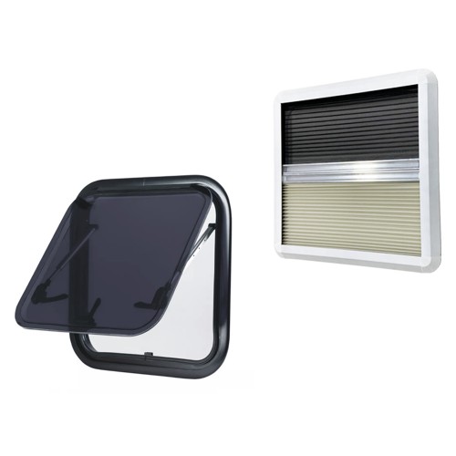 / FINESTRA AM MASIS A COMPASSO 450×450 mm NERO SCURO / KIT CON OSCURANTE E ZANZARIERA